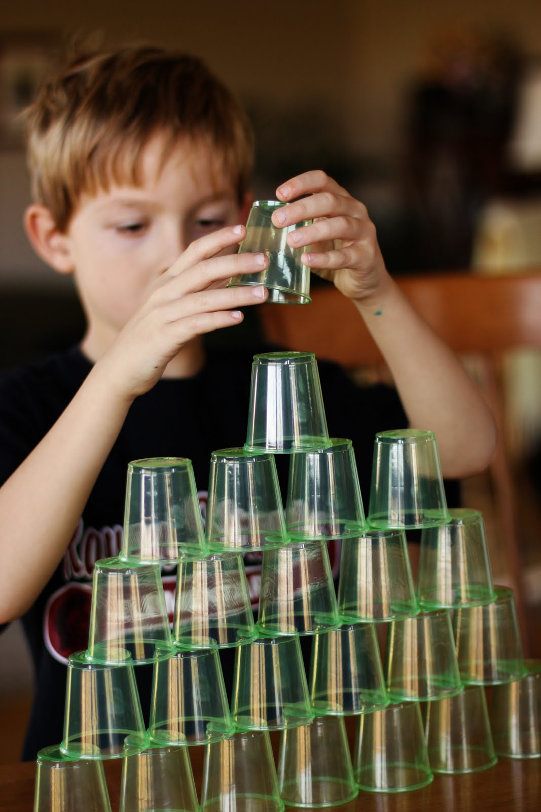 Besides making for a few cool pictures, the thing I found most striking was that, as Henry built his structures, a few cups would inevitably fall down every so often. A year ago, with the first tumble, Henry would have stomped off in tears, angry and frustrated. But instead today, he laughed (laughed!) and just kept building.